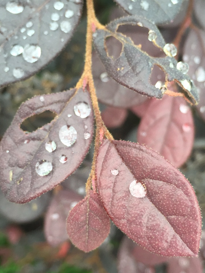 清晨,红花檵木上有盈盈水珠⋯⋯