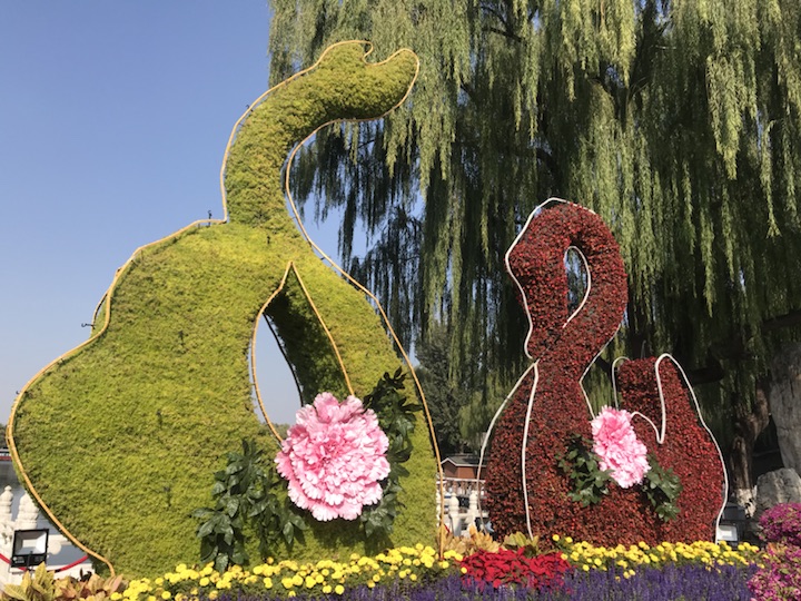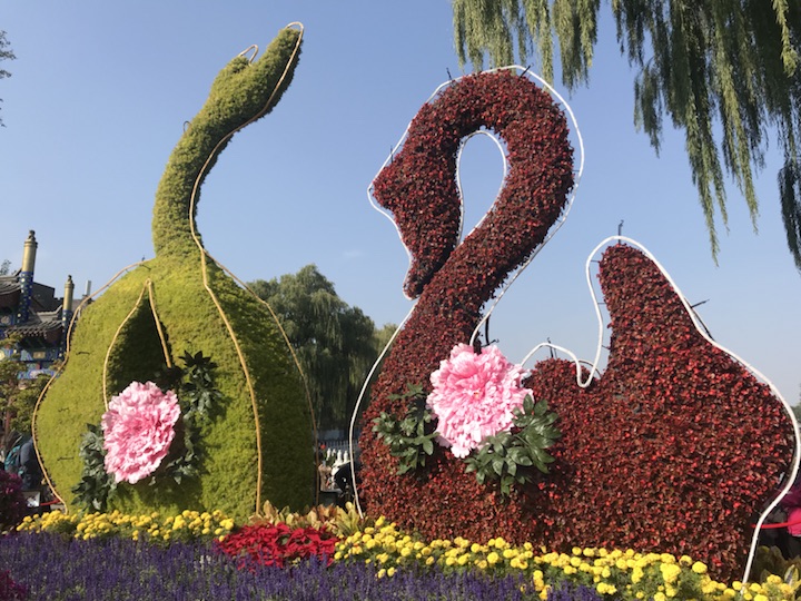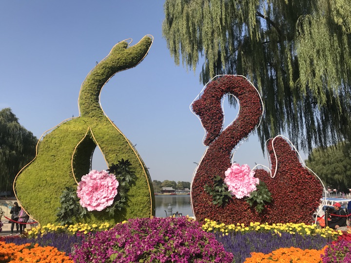 选择优美的‘天鹅’缀花造型,形成轻松活泼的花卉场景,天鹅造型与碧波荡漾的什刹海湖面和谐统一,象征着西城百姓幸福和谐的美好生活