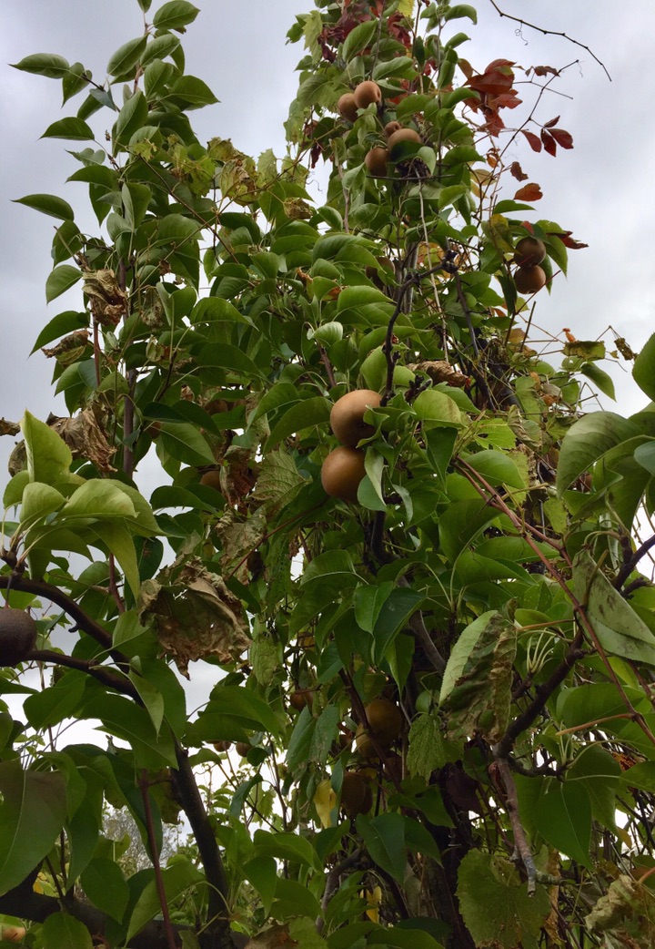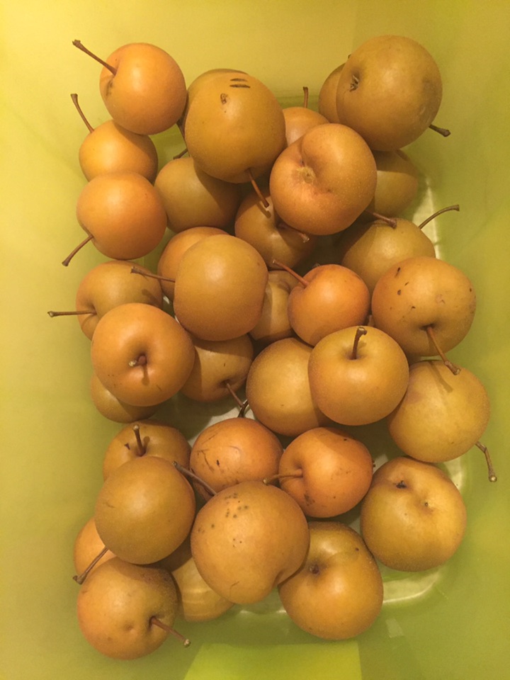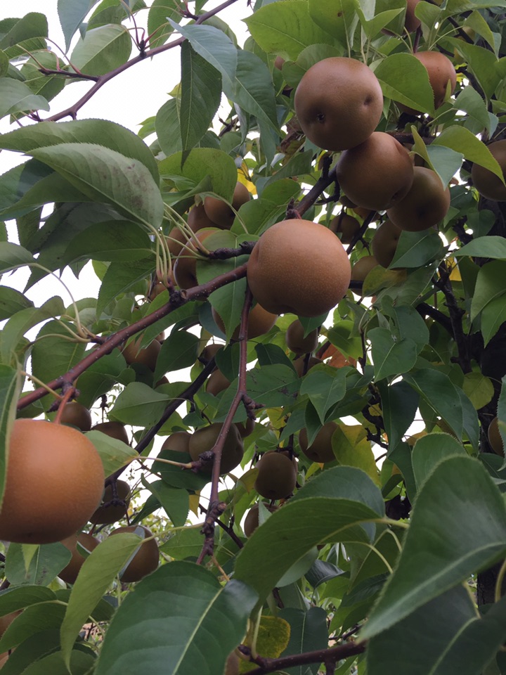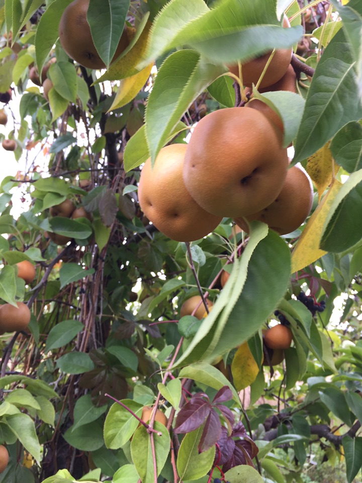 水土不服么? 这些梨长得都很小 梨面上坑坑、点点较多 整体形象不是那么光鲜、靓丽 只有照相的这几棵树上的梨多一些 其它树上几乎都空了 尝了一下 味道、口感都不错 只是冰凉、冰凉的 像从冰箱里拿出来似的 貌似是摘了冻梨哈😜