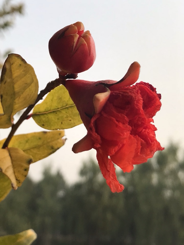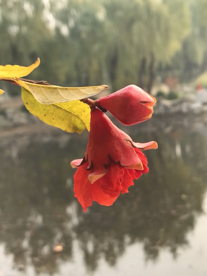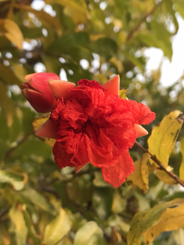 本是初夏的产物,却意外的在这个季节看到石榴花开,果子上次还看到很多,这次却是一个不剩