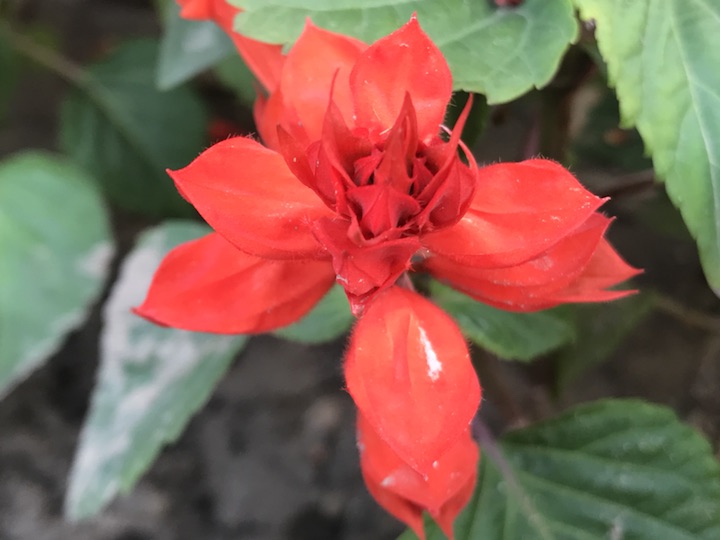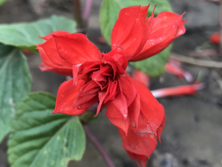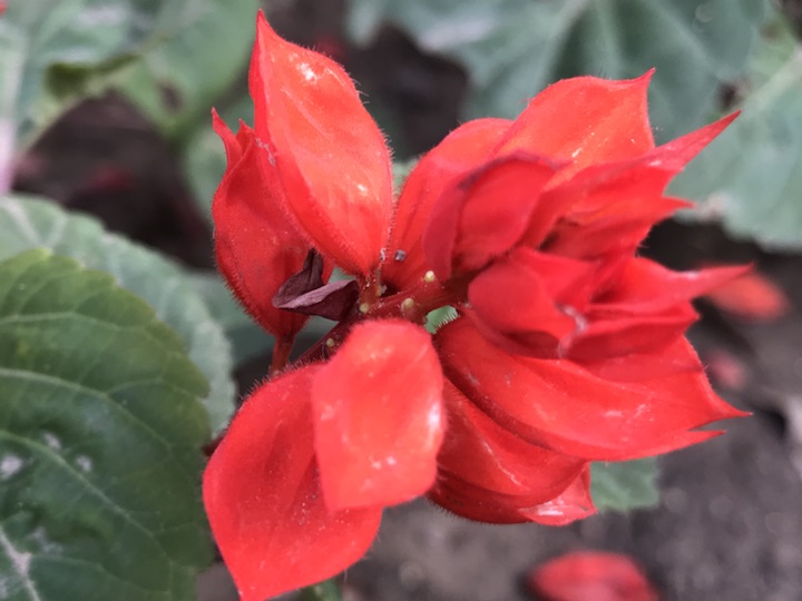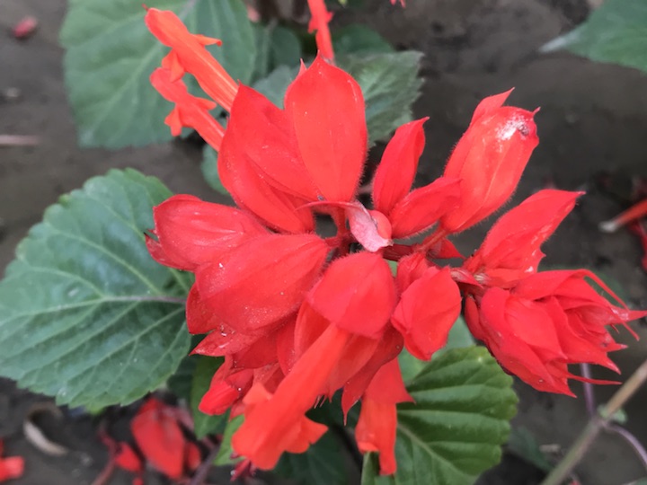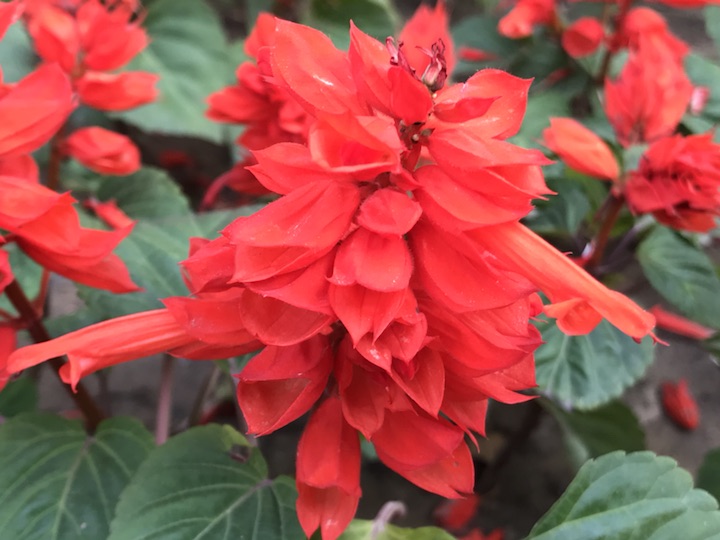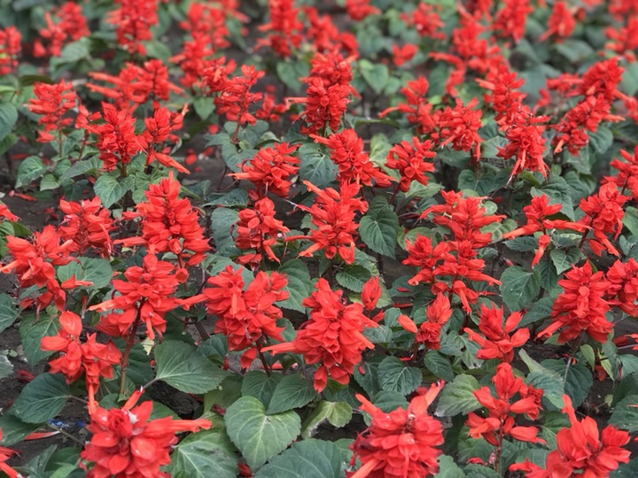 每次看到一串红,总是不由得想到礼服上的胸花,总是那么的喜庆与出彩