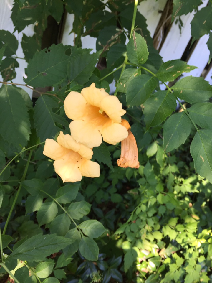 后院的“常规”凌霄😜 还种了一株红色的 到今年都两个年头了却依然没有开花 比较令人失望