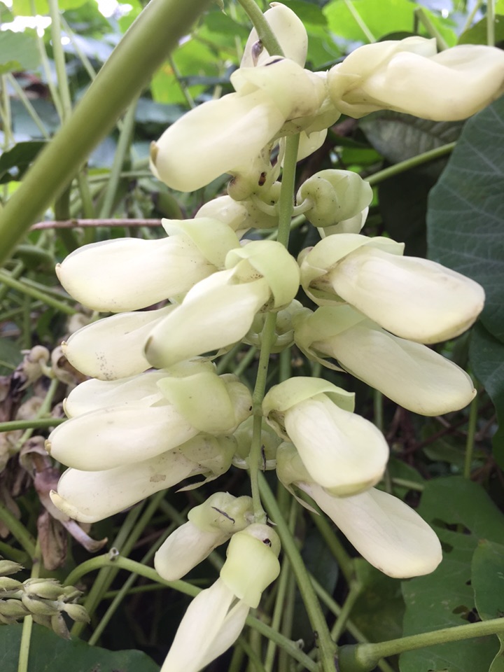 到了盛夏,它们开始绽放出一串串米白色的花儿,然后就结出一串串的果实。通常情况下它的结果率是惊人,的,一串花儿就能结出几十个果实。