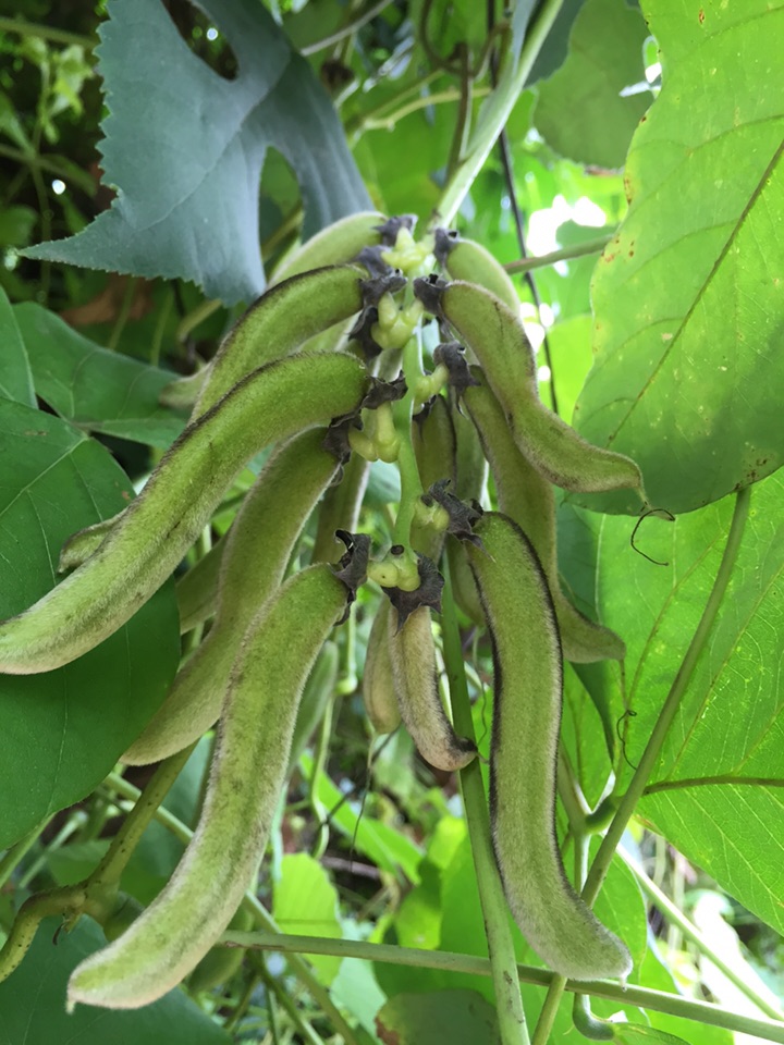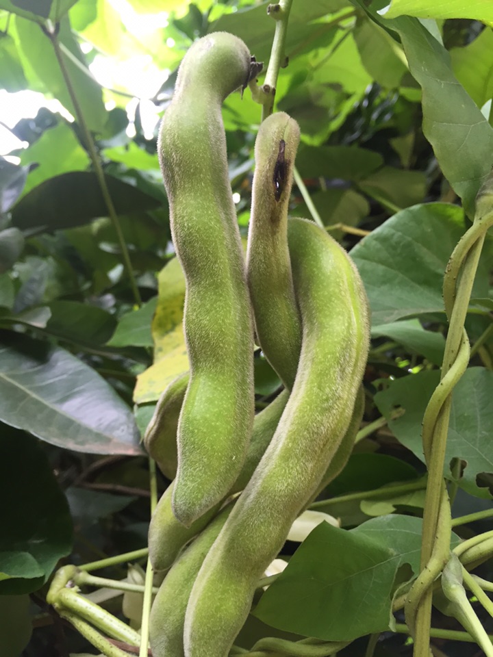 它的果实是长长的,成熟的果实皮较硬,表皮有茸毛,不能直接炒来吃,据说有毒。