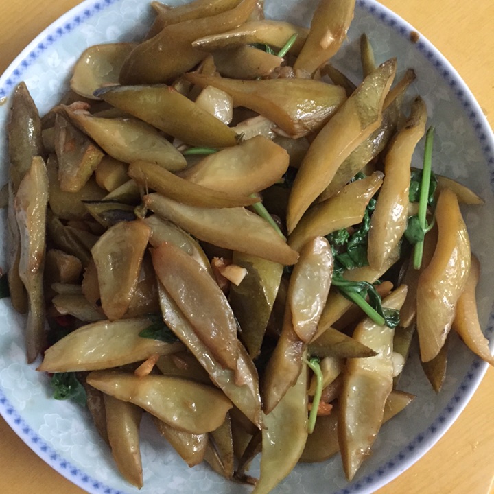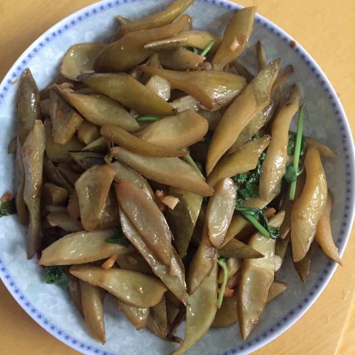 泡好后就可以炒来吃了。最好配以蒜末,金不换,辣椒同炒,是我喜欢的一道美味。(但是不能常吃)