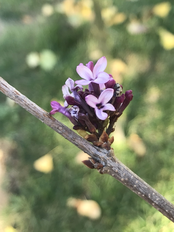 秋天的丁香开的不似春天般灿烂,一簇簇却不紧不慢的点缀在枝头,持续很长一段时间的美