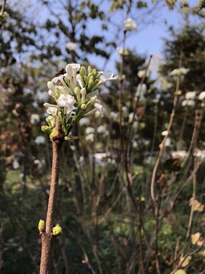 相对于紫丁香,这白丁香倒是给力的很。稀稀落落的开了一片,花也开的要繁密很多