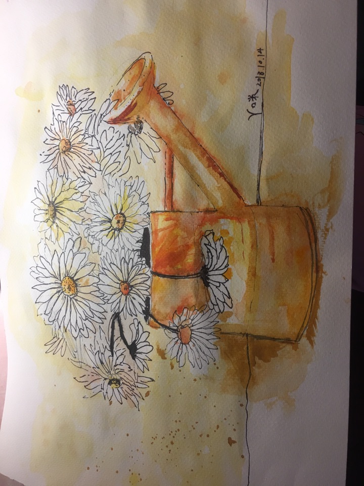 这次是用水彩画的,第一次画,不是很好,见谅~88!
