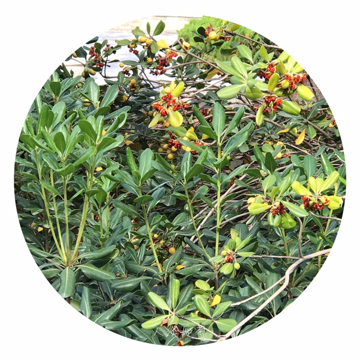 海桐,拉丁名Pittosporum tobira,别称海桐花、山矾、七里香、宝珠香、山瑞香。是双子叶植物纲 、海桐科、海桐花属常绿灌木或小乔木,高达6米,嫩枝被褐色柔毛,有皮孔。叶聚生于枝顶,二年生,革质;伞形花序或伞房状伞形花序顶生或近顶生,花白色,有芳香,后变黄色;蒴果圆球形,有棱或呈三角形,直径12毫米;花期3至5月,果熟期9至10月。