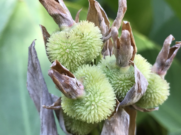 美人蕉亭亭玉立美艳动人,实乃实至名归。平时视线一般都被抢眼的花给吸引着去了,对于它的果子看的是少之又少。这次偶然间发现它的果子其实也很美嘛有点凝脂美玉的感觉,那么问题来了!花和果,哪个会更入你的眼呢?