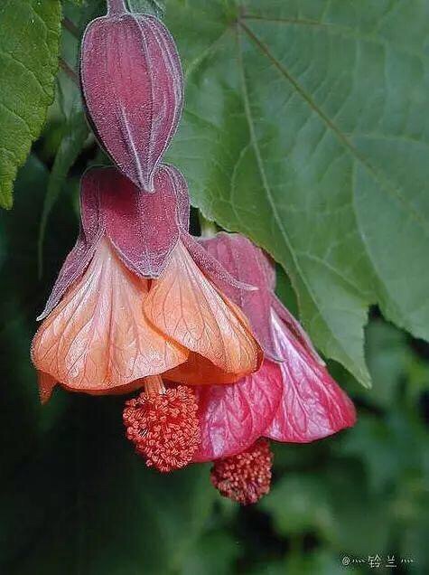 红萼苘麻-一朵风铃绿叶间,飘飘然间露芳颜