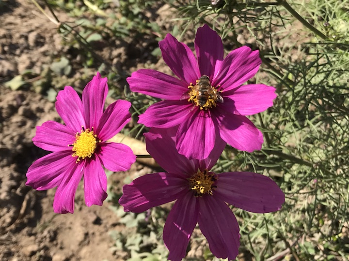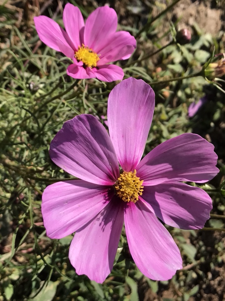 秋英在这个季节也还算是常见的,虽说像那样大规模的花开成海已难觅踪影,像这么一小簇的独自开还是比较普遍的,花朵大小不一,颜色深浅不一,植株高矮不一,却是野趣十足