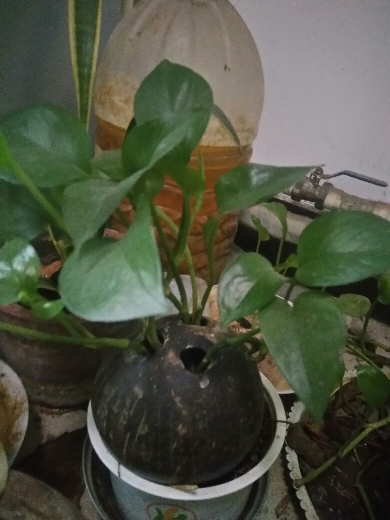 椰子壳栽绿萝,我是不是很有才,欢迎来表扬我