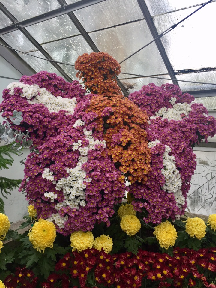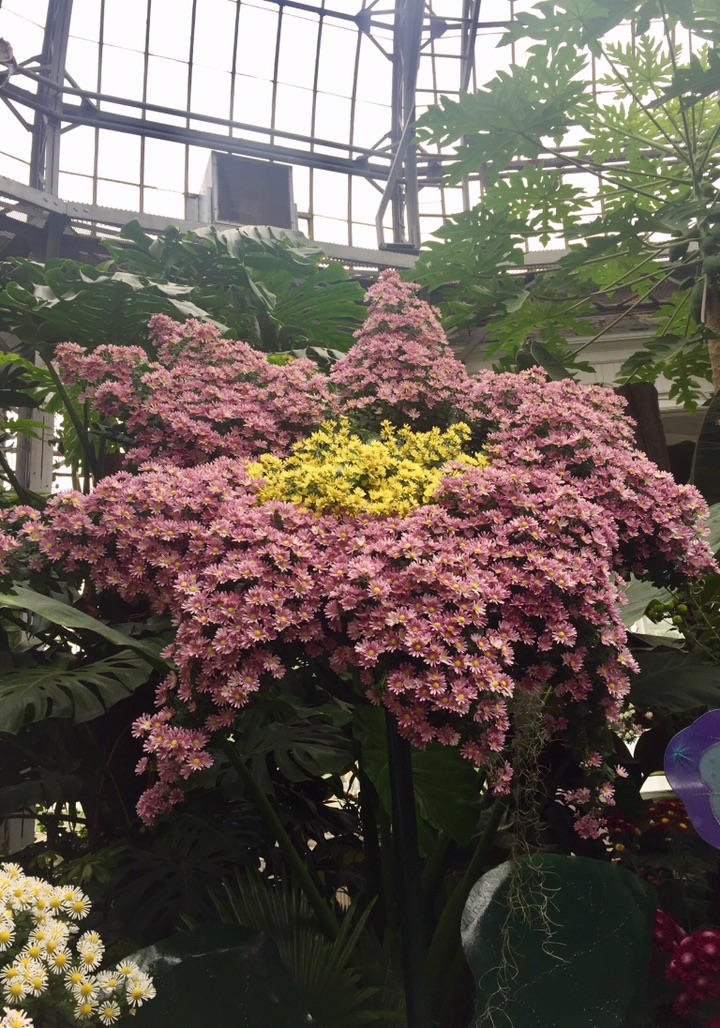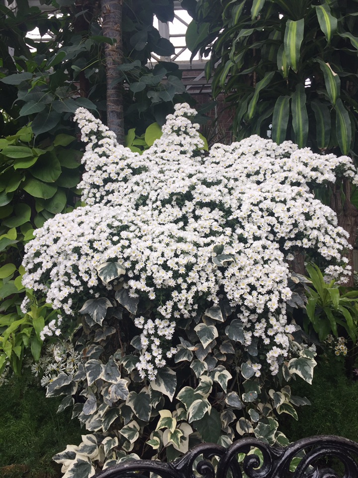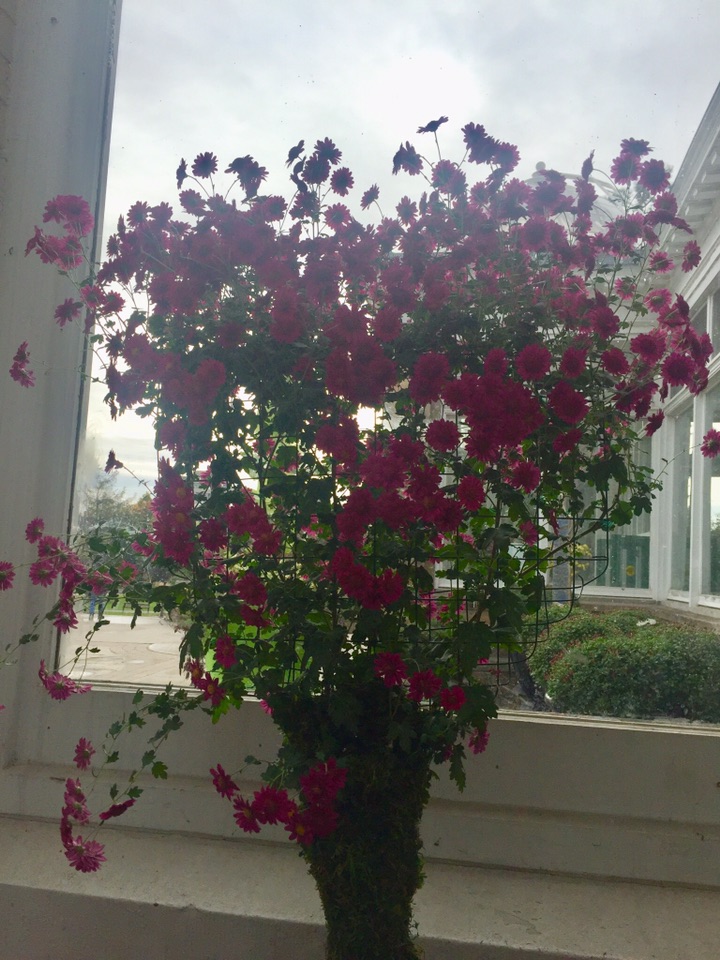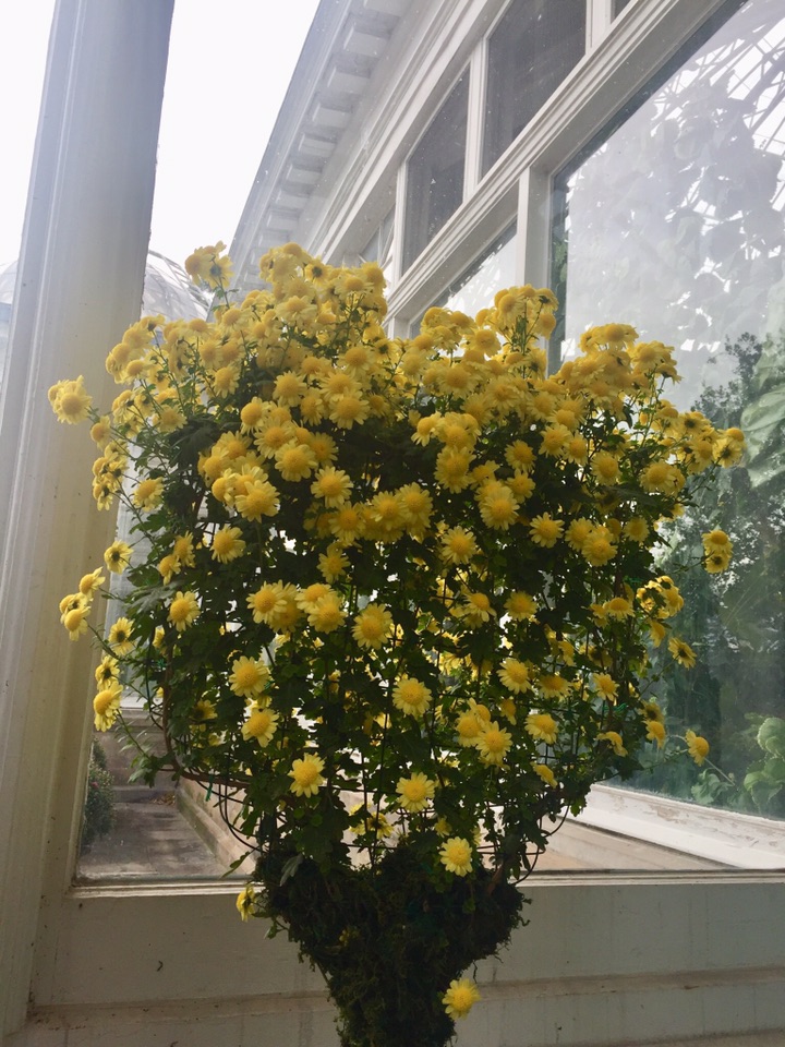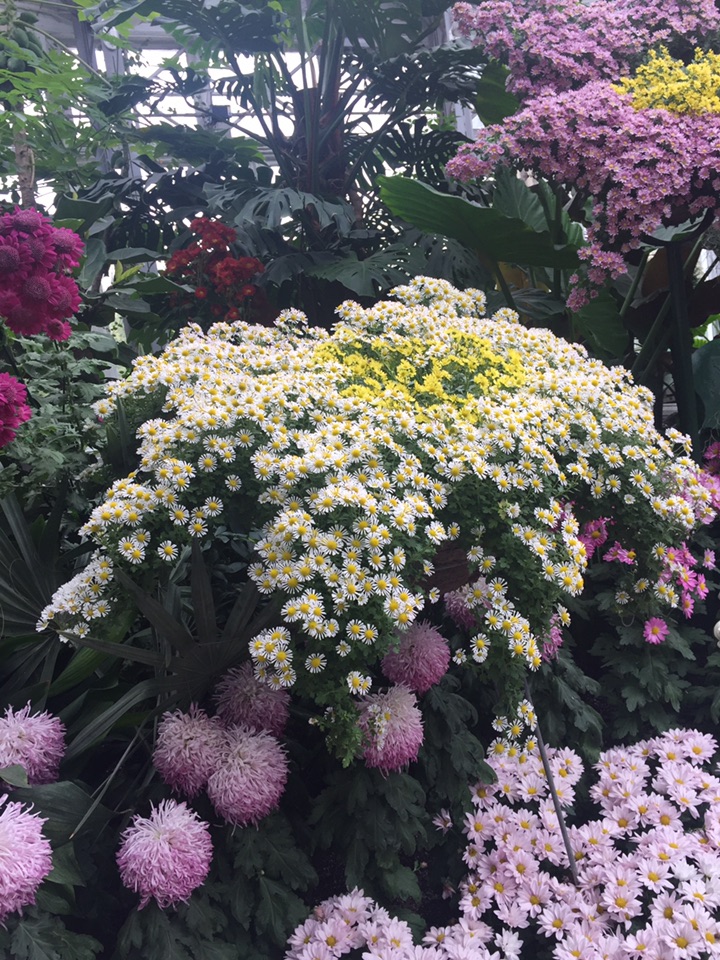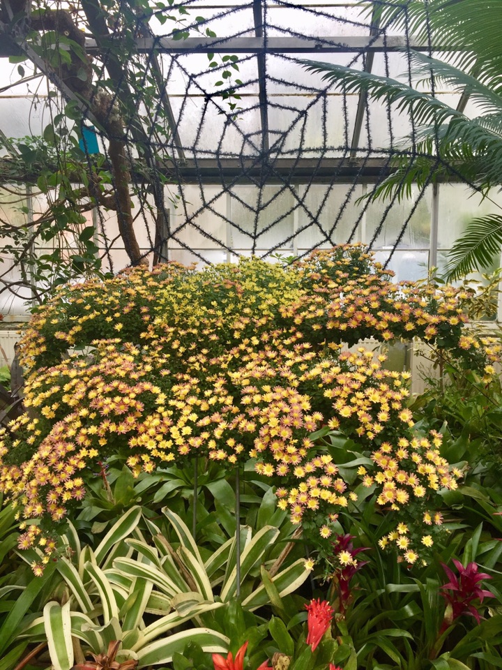 时隔一个月 故地重游在多伦多小住几日 和往常一样 毫不例外的、每次到访多市必去的地方便是Allen Gardens Conservatory 呵呵,这次有时间 等到开门了才悠哉闲哉地进去了!不曾想呀, 进得门来喜不自禁 眼睛立马被各种品种、各式造型的的菊花所吸引 - 哈哈 原来赶上园里的、始于月初的秋季菊花大联欢!所种植的菊花品种、在园内的创意造型、还有各种菊花的数量无疑都是我很久以来所见的最多、最佳、最高大上的 真真是一场视觉盛宴,眼花缭乱中手机不停地拍 也不知在里面呆了多久 反正不知怎的突然手机就完全黑屏、居然没电了! 估计是拍了太多的菊花、手机里放不下了?!😂😝😜