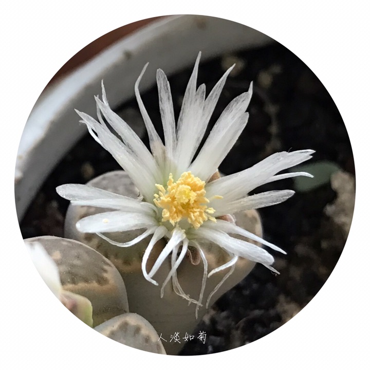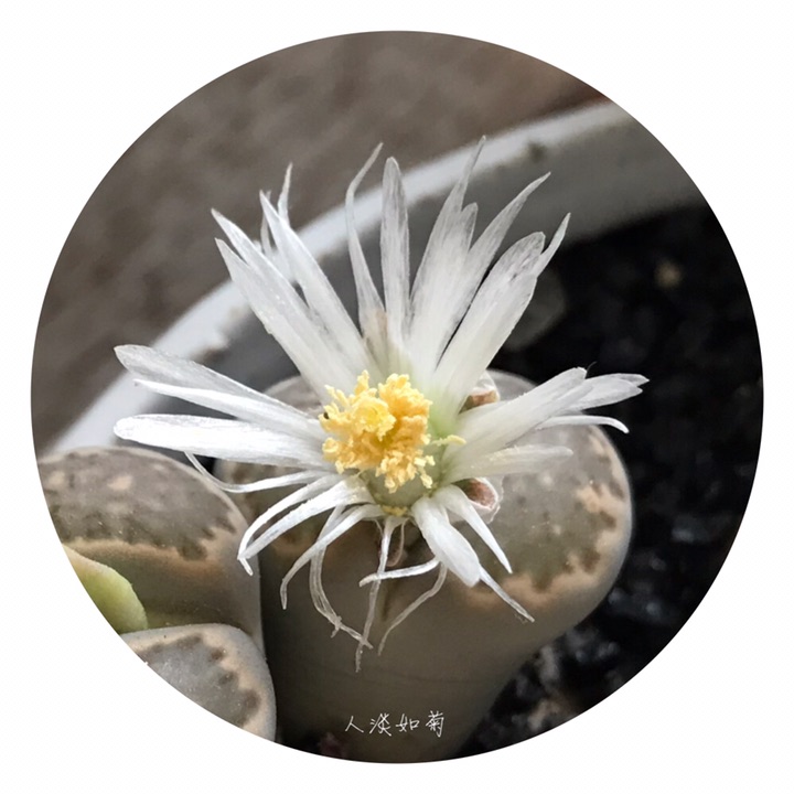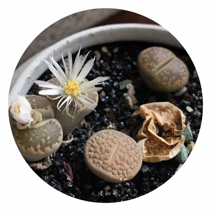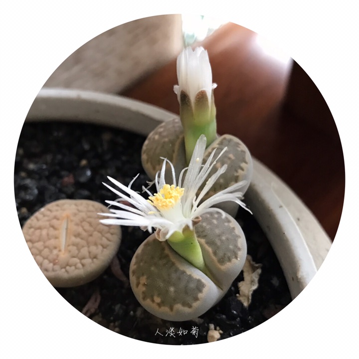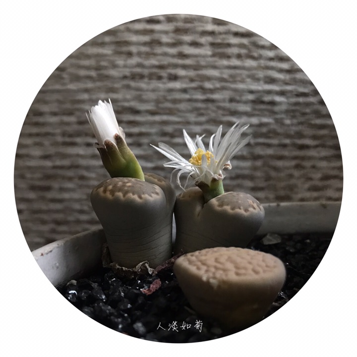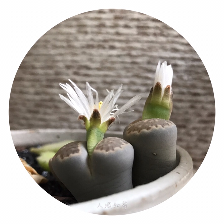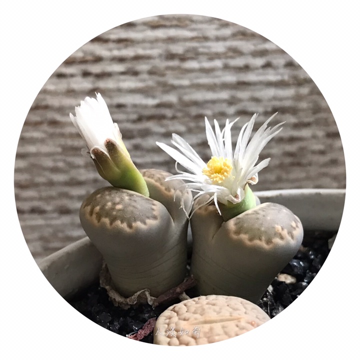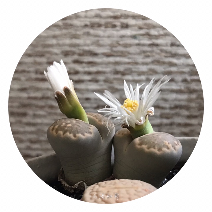 生石花(学名:Lithops N. E. Br.),别称元宝、象蹄、屁股花。是石竹目,番杏科生石花属全属植物的总称,约有40种。多年生肉质草本,几乎无茎;球状叶色彩多变,叶表皮较硬,色彩多变,顶部具有深色树枝状凹陷纹路,或花纹斑点,称作“视窗”。植物顶部有一裂缝,裂缝中开花,花单生,雏菊状,花茎2-3厘米,花白或黄色,花期盛夏至中秋。