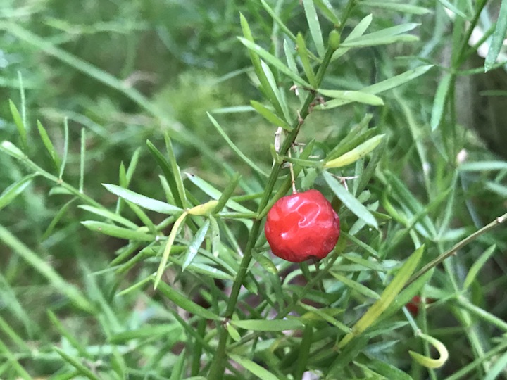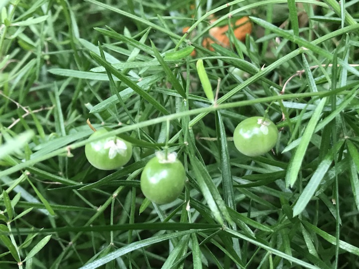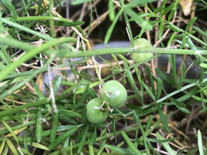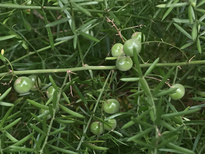 一直不知道原来天门冬是带刺的,只是刺比较短小不明显。我是找红果果的时候随意扒拉苗然后被扎手了才特别留心观察了一下。