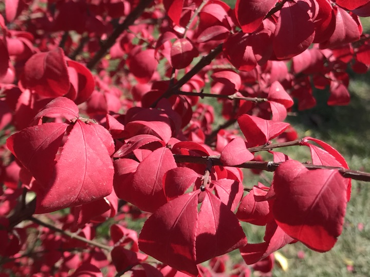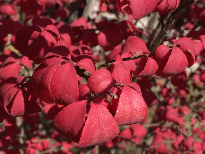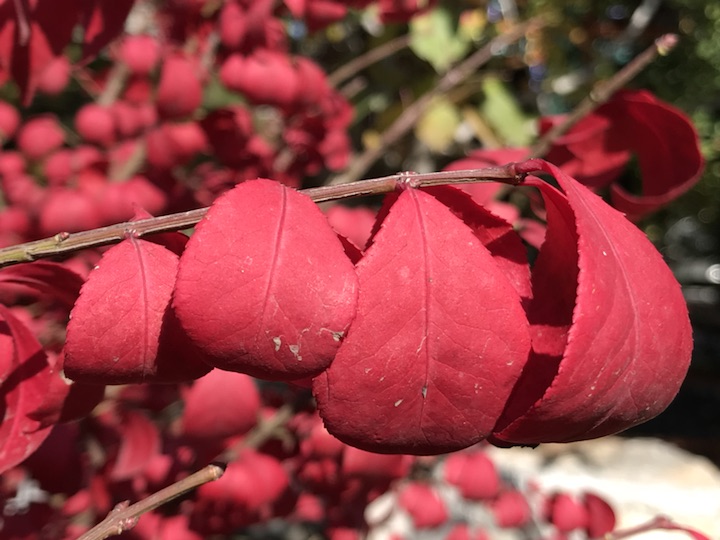 偶然看到这一株不知道是什么的植物的叶片却红的通透美丽,一点儿也不输花的光彩