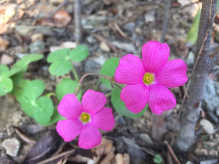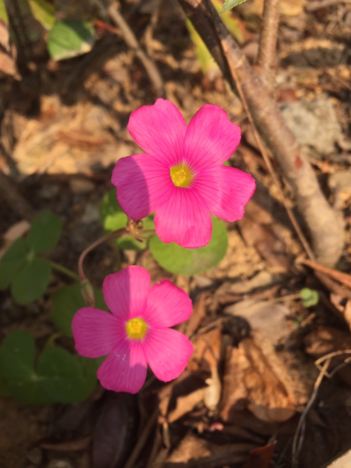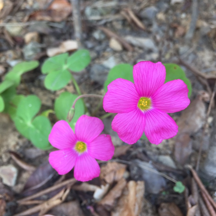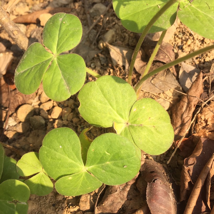 :红花酢浆草的叶子没有这么多毛,还有这个花很大很大,一个花剑只开一个花,红花酢浆草一个花剑能开很多花