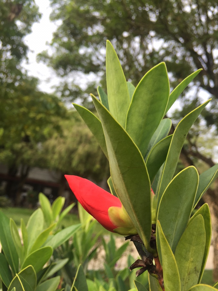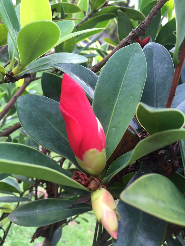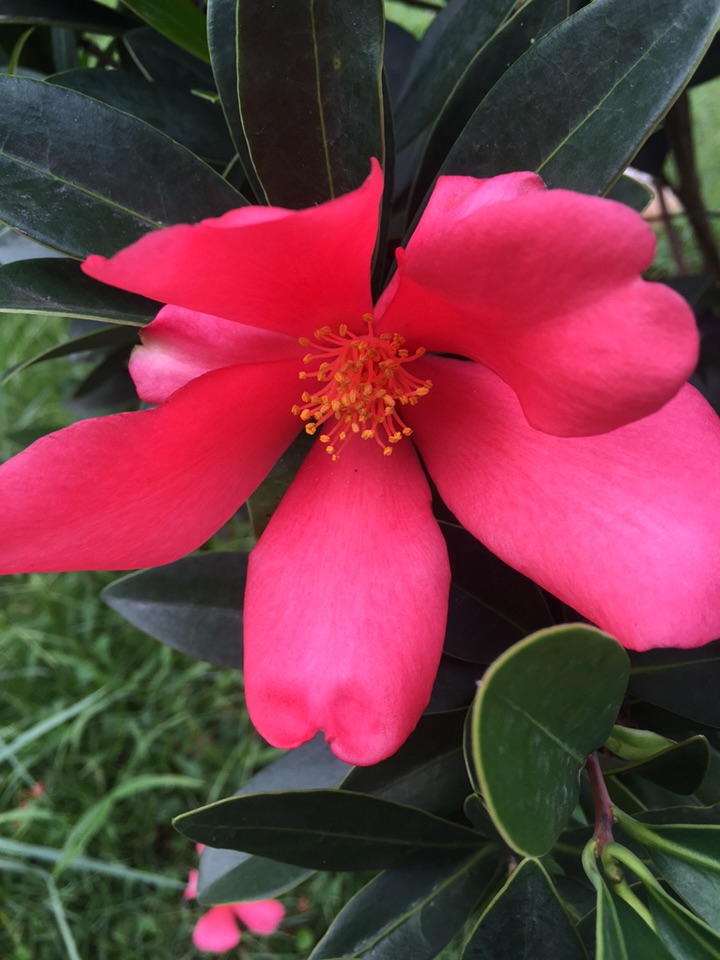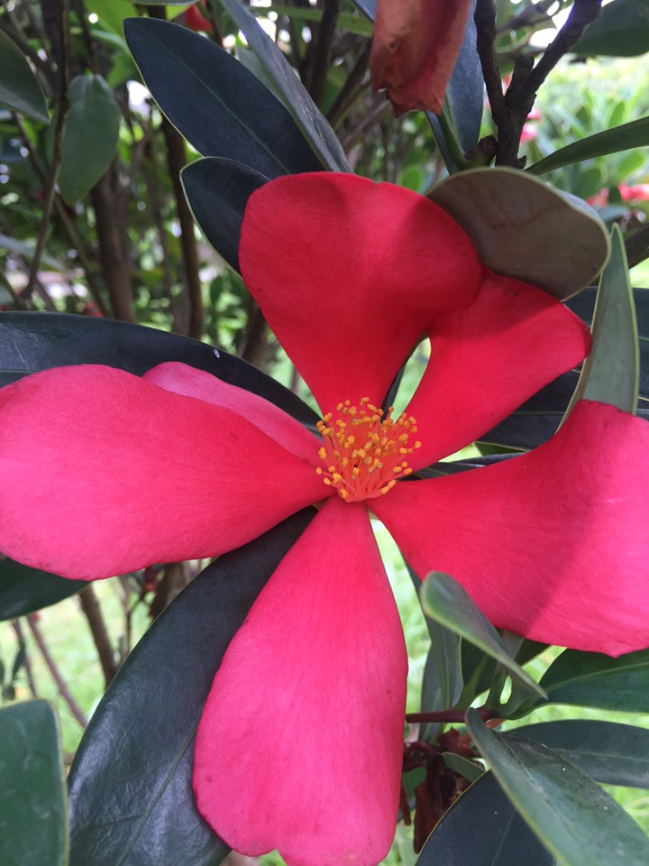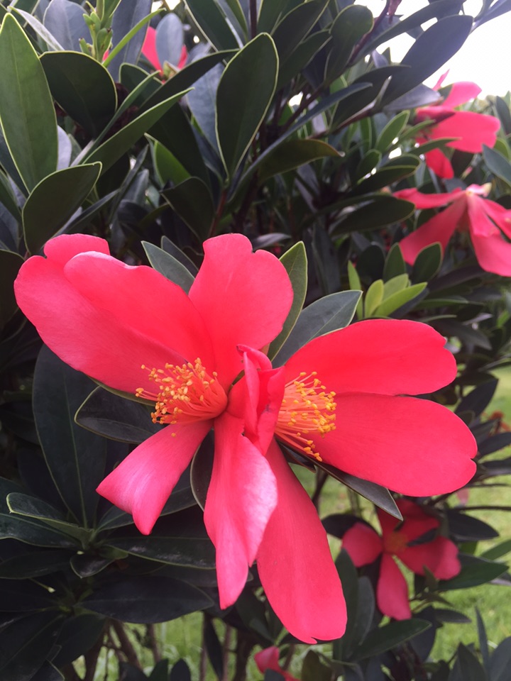 深秋,杜鹃叶山茶花开的更红艳了。