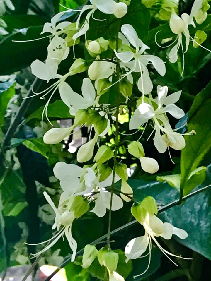 秋風驚綠,垂茉莉花芳心吐蕊,芊軟依依清影長。
