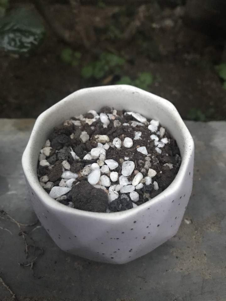 因为每次看它都是一副半死不活的样子,平时也没怎么关注它。老师说这个得闷养,于是矿泉水瓶剪了个底扣在了它的头上,可两个多月过去了,不光不见长我感觉还更没生机的多。照片为11月1日晚拍