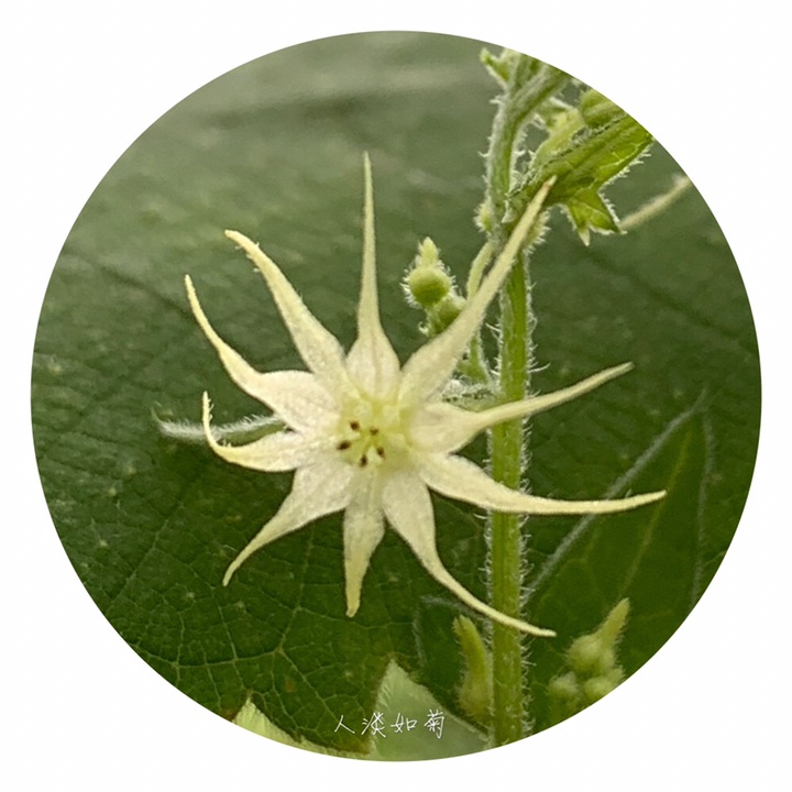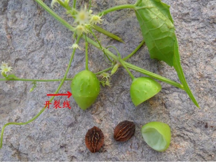 盒子草(学名:Actinostemma tenerum var.tenerum)别称黄丝藤、葫篓棵子、天球草、鸳鸯木鳖、盒儿藤、龟儿草。为葫芦科盒子草属下的一个变种。也称合子草,其中文命名,朴素而精准,堪称典范。盒子草属于葫芦科、盒子草属,适合生于山坡阴湿处草丛中、沟边灌丛中盒子草有小毒,味苦、性寒,可利尿消肿、清热解毒,另可治毒蛇咬伤。用于肾炎水肿,湿疹,疮疡肿毒。