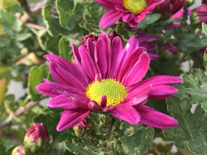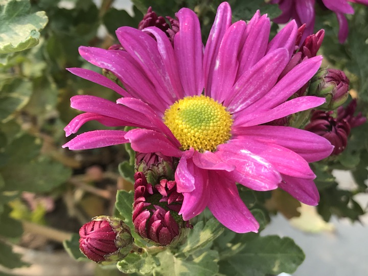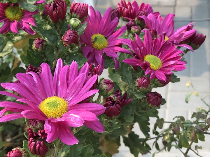 种蛇瓜的那家人家一年四季好像总也不缺花开,蛇瓜的藤蔓才刚清理出来,一簇簇的小菊又摆上了