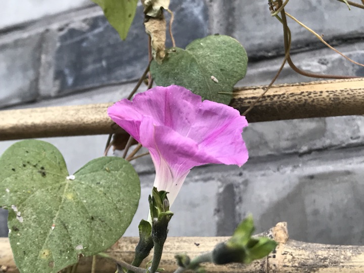 胡同里居然还能看到几枚盛开的牵牛花,在这样的季节里着实让人意外不已
