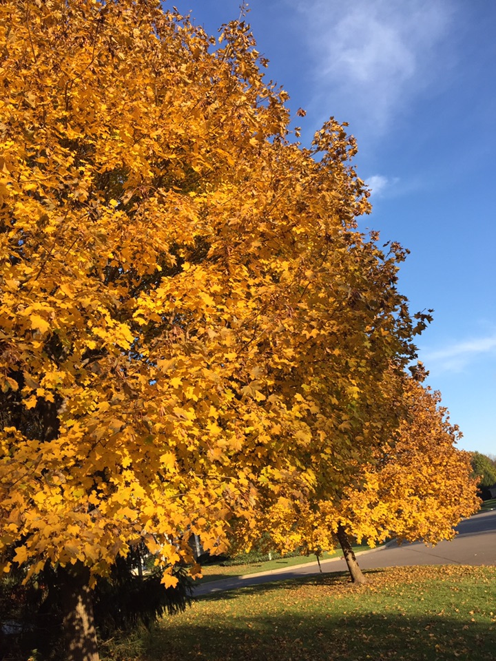 秋天真的很美、很有颜色!虽说秋雨绵绵、阴雨天较多 可那一树树红一树树黄金 还有家家门前都有的、红得耀眼的卫矛真是让这晚秋时节亮丽了不少 更别说要是有阳光照射的时候门前那一派色彩通透的景色啦!