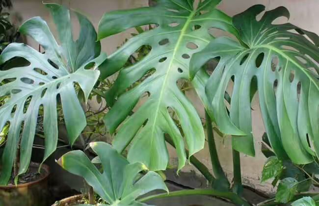 龟背竹在夜里能吸收二氧化碳,平时能吸收甲醛等有毒气体,净化空气作用。同时还能防止电器辐射。