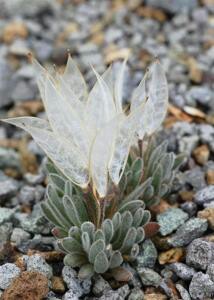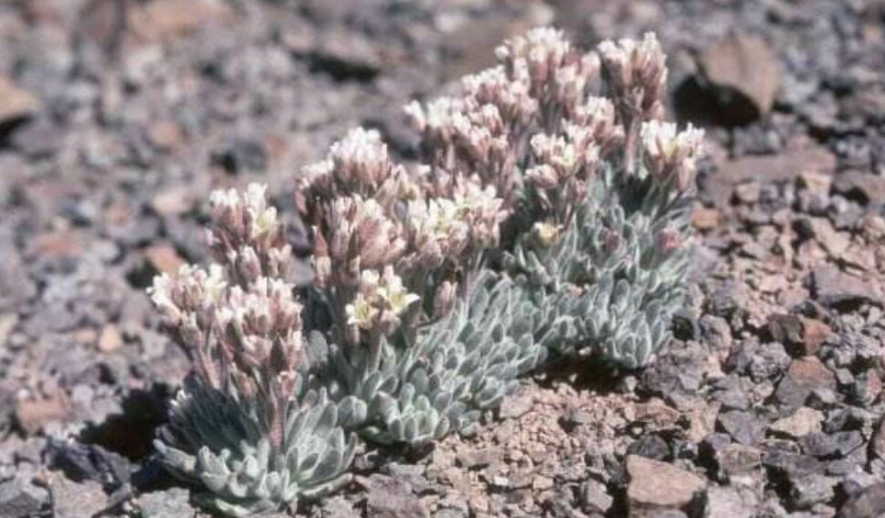 体型很小,莲座状叶,灰绿色,柔软,肉质多毛。有密集的花序的小白花