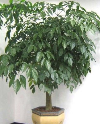 幸福树是商品名,学名菜豆树,其叶子散发的清香能驱散蚊子,并有净化空气的作用。