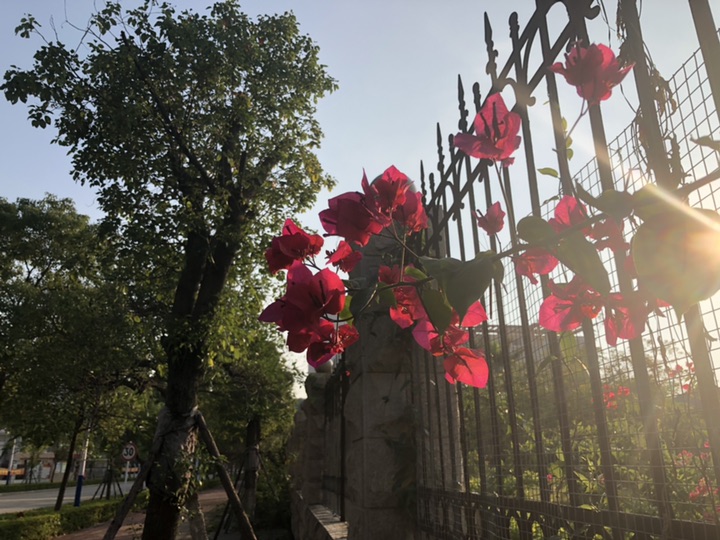 叶子花在我们家乡叫三角梅,到处可见,红红火火一大片