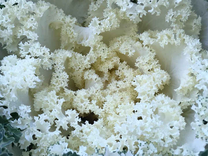 天气都降到零下了吗?若不是看了下天气预报我都不知道!今天这天气还是暖和的,阳光明媚大风又把蓝天送回给了我们,中午的阳光晒在身上暖洋洋又懒洋洋。这是南长街花坛里的羽衣甘蓝,错落有致的排列在道路的两旁,颜色有紫色和这个银耳色,当然紫色寥寥却是这个白的有点泛黄的颜色居多