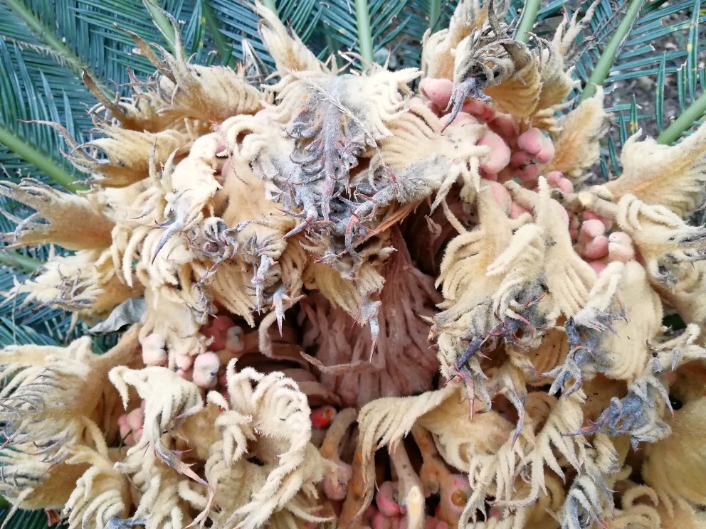 铁树开花不易见,铁树结子更难遇。偶遇一株,花友共享。