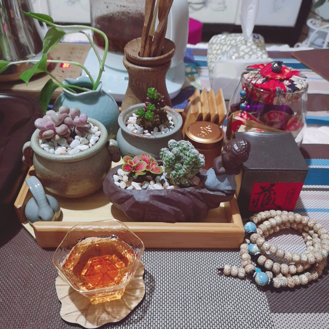 下雨天,在家喝喝喜欢的茶,赏赏自己种的花,也是一种惬意