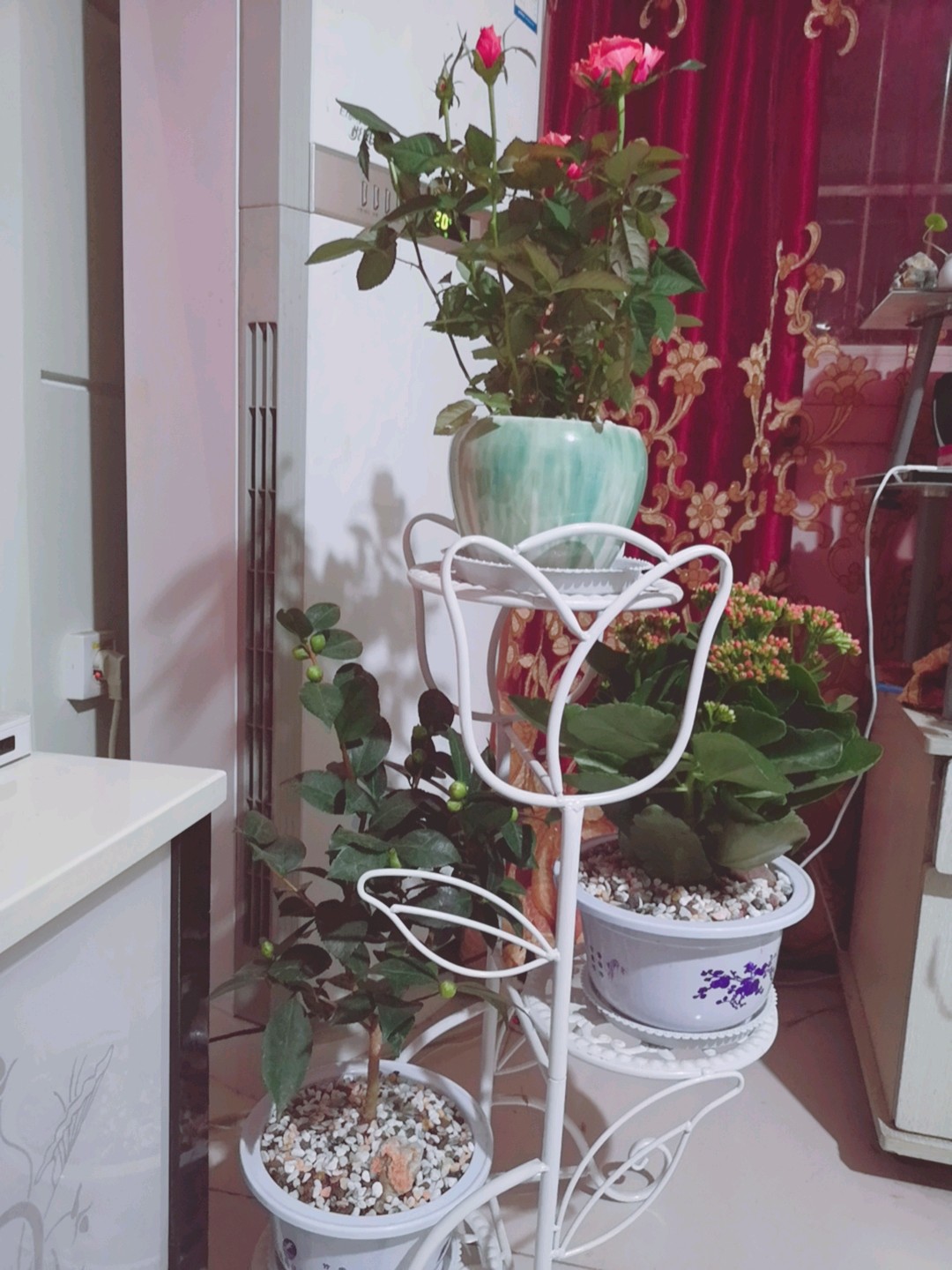 还买了一棵茶花和长寿花,都是好活的