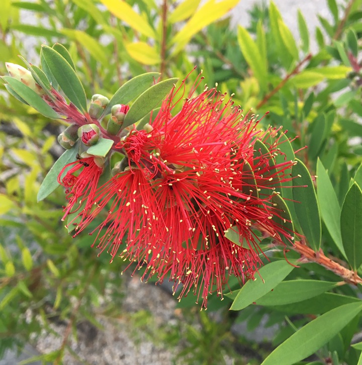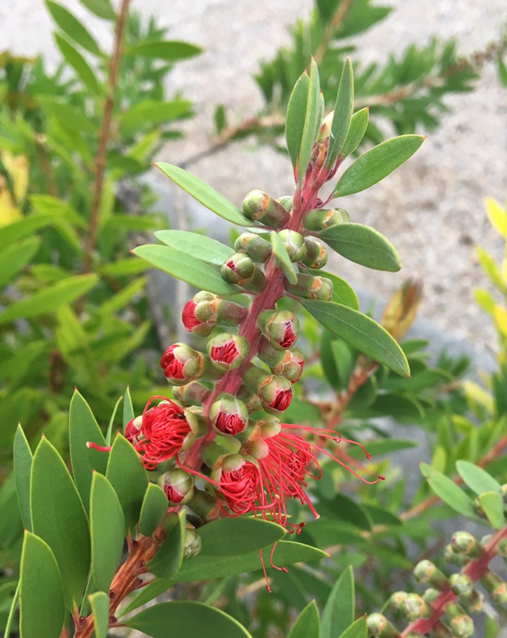 万条垂下红千层,含苞欲放色更浓。