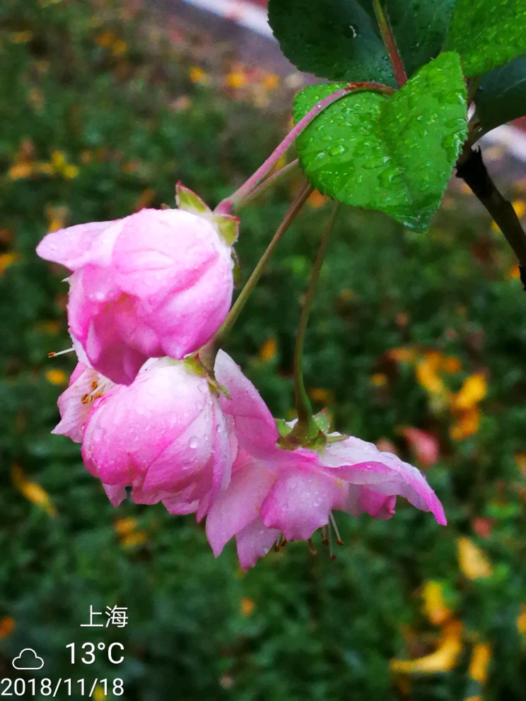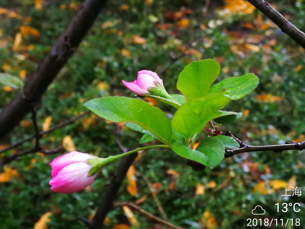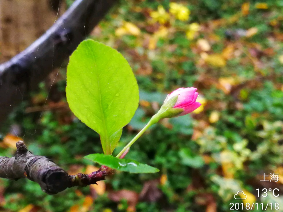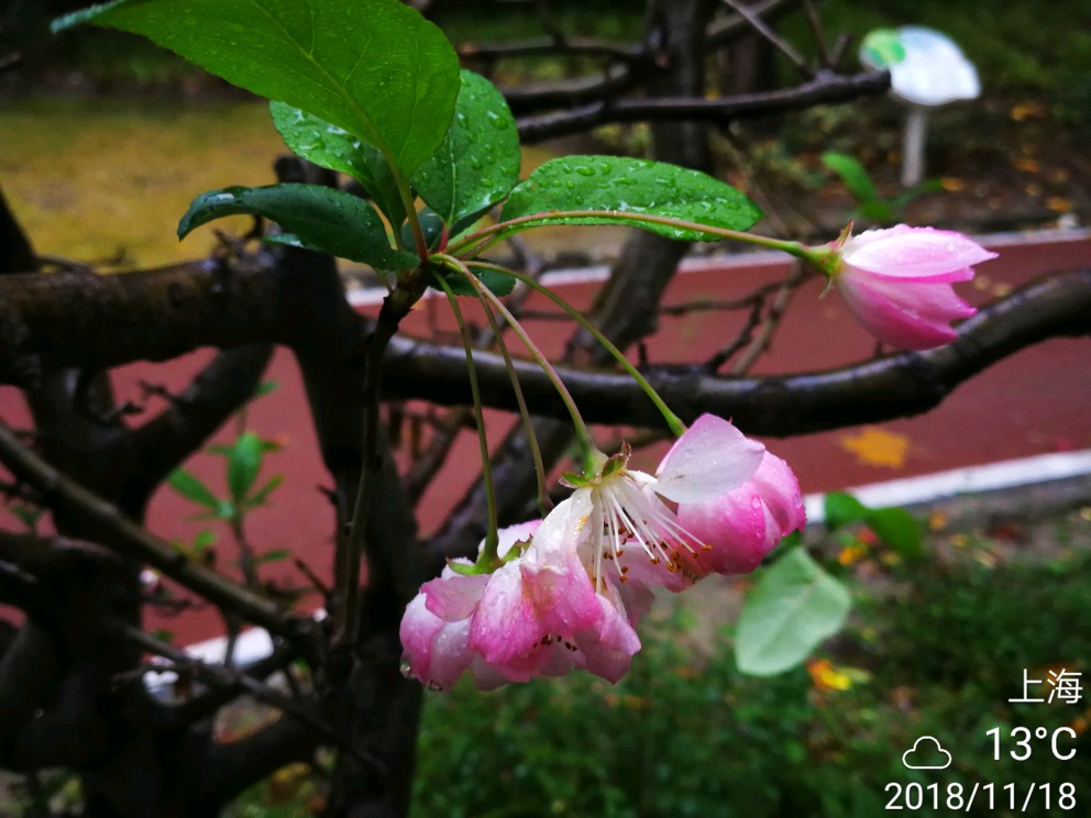 看看,这几朵花,甚至快要开败了。总之,本该春季开花的海棠,居然深秋里反季开了,真乃神奇。