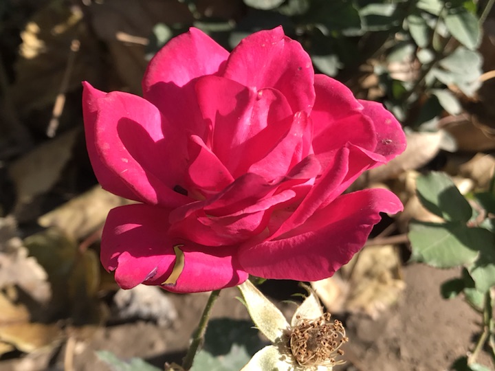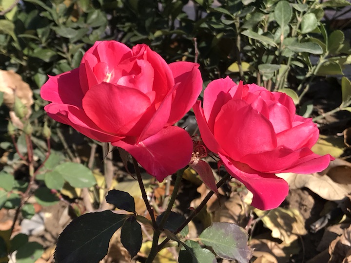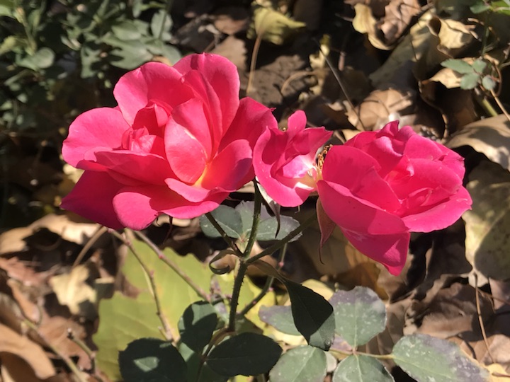 有些花草真的很神奇,一年四季花开不断一年四季也吸睛无数。这是个连黄叶都近乎飘零无几的季节,月季们却来开得格外灿烂,艳丽的花朵,深深浅浅的红色,令人忍不住看她一眼再多一眼!