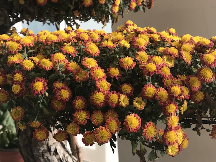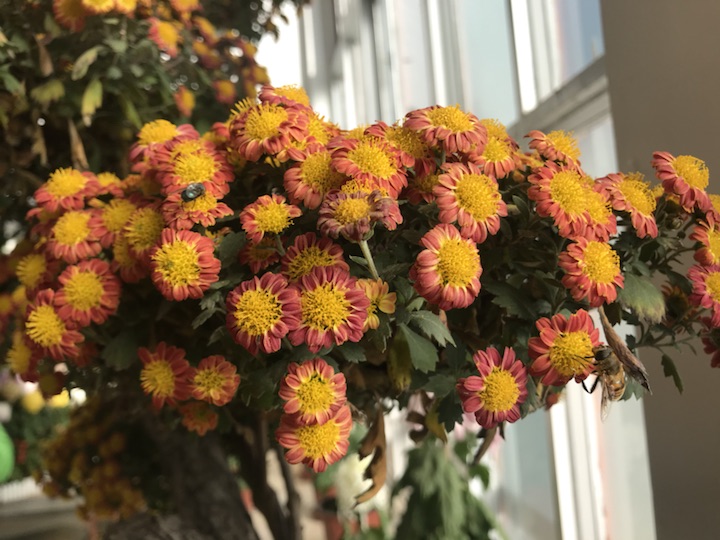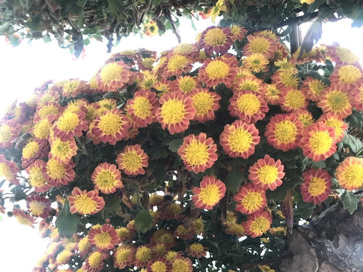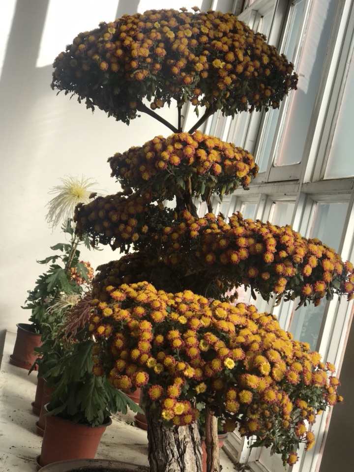 唐花坞的菊花很多,可哪一种的味道都不及这个好闻。浓浓的香味让每一个途径它的人都要驻足停留许久,更有好学的阿姨不甘心只闻其香不知其名的跑去把工作人员拉过来问这是什么菊。我竖起了耳朵准备涨涨知识,可惜工作人员也不够专业,他只说是菊,说是很普通的盆栽菊,便不再说什么了。