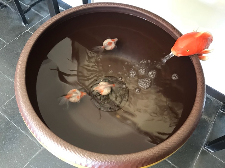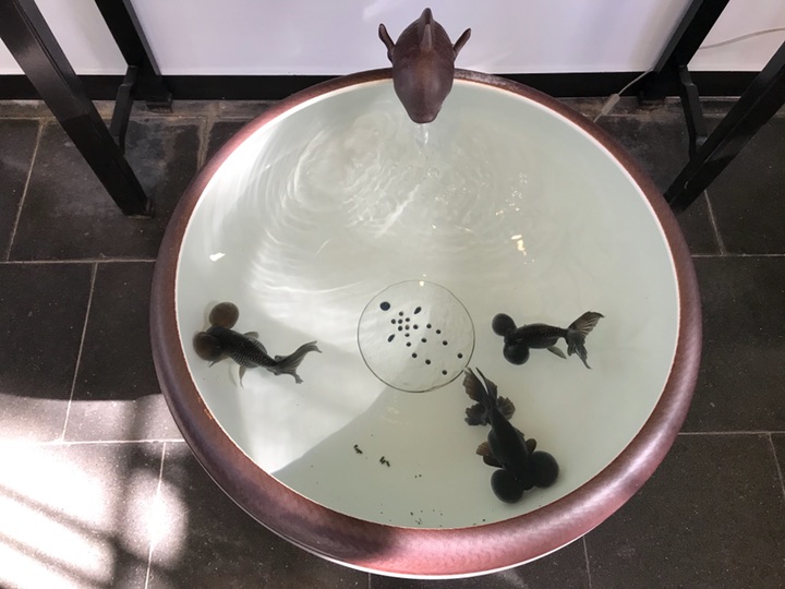 这个季节的蕙芳园倒是没什么花开,它可能不像唐花坞会根据时节的不同来进行不用的花展,每次来这里边都只是兰花。这个季节所开的兰花有限,所以并没有什么花可观赏,只有这零星的几枚小拖鞋开得不胜欢喜,再搭配上各种观赏鱼,也算是趣意盎然了