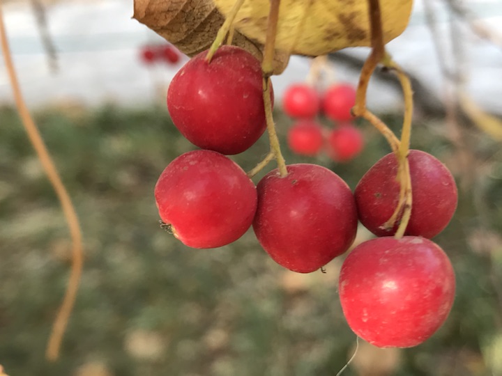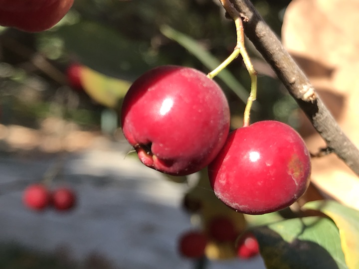 关于冬季的这些小红果也真是奇怪,同样的小巧红润,满挂枝头,细看虽说差距还是蛮大的,可我好像老是分不清楚它们。经常性的张冠李戴,让我看到它们再不敢随便的定义