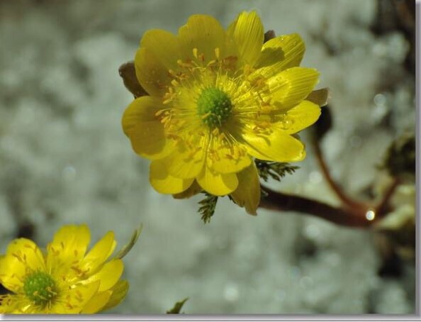 侧金盏花-迟日江山丽,春风花草香。泥融飞燕子,沙暖睡鸳鸯。江碧鸟逾白,山青花欲燃。
