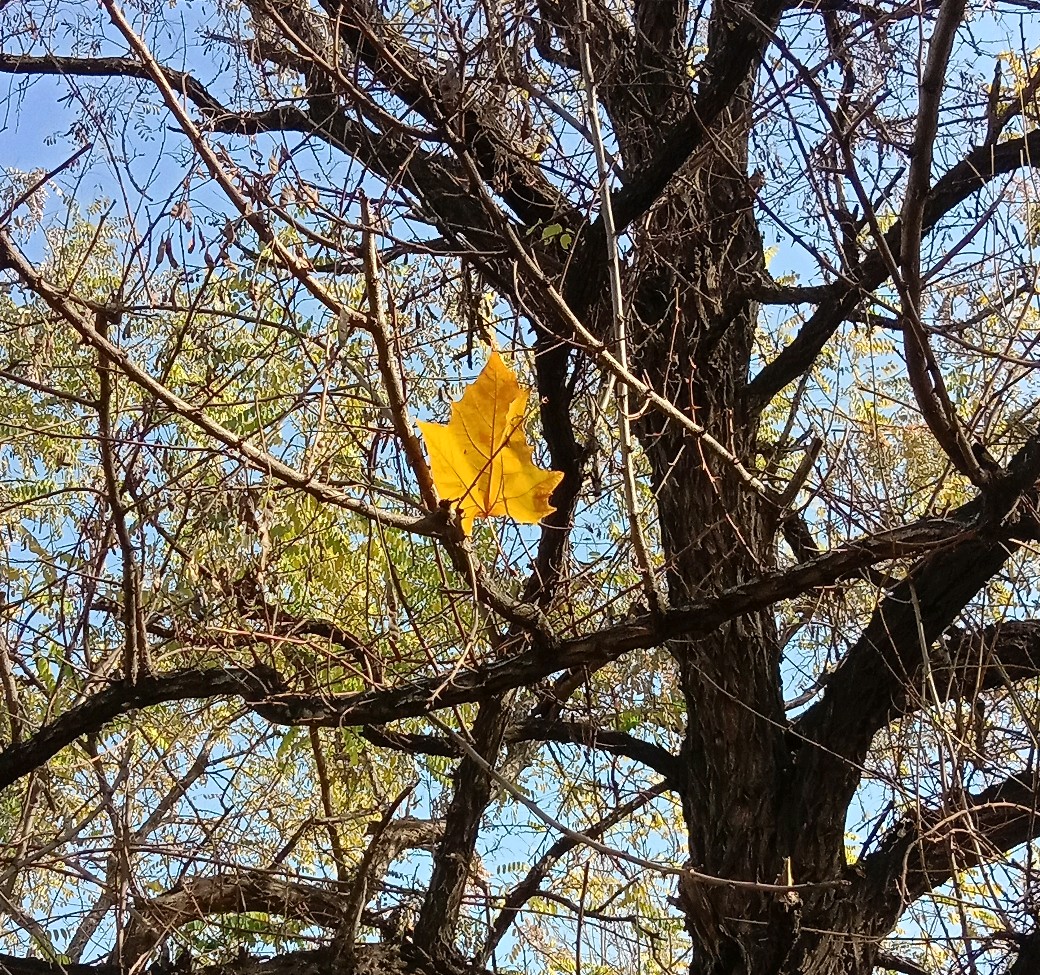 偶遇,一叶挂枝头。