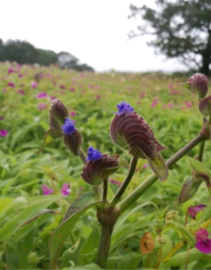 多年生草本,茎有明显的节和节间。叶互生,有明显的叶鞘。植株有成丛的基生叶,叶、总苞及苞片常密被蛛丝状白毛。苞片镰刀状弯曲,多枚覆瓦状垒生成鸡冠状。花两性,花瓣蓝紫色、蓝色或白色;雄蕊6枚全育,辐射对称;花丝被蓝色蛛丝状毛。生长环境