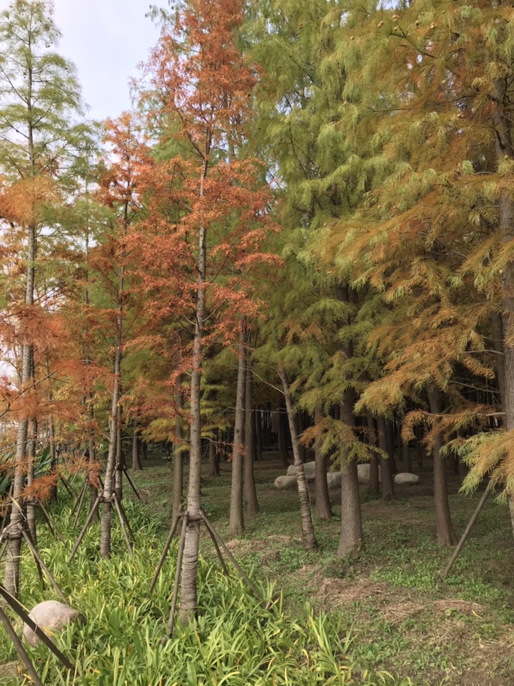 池杉,鸡爪槭,黄槿,在秋天来临之际呈现出自己的美丽。