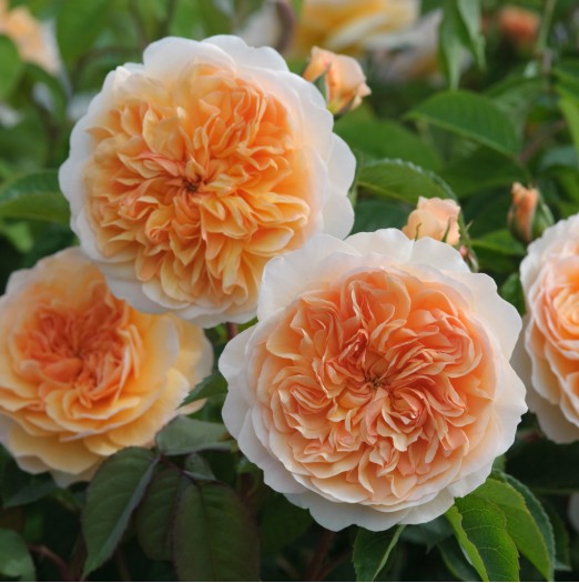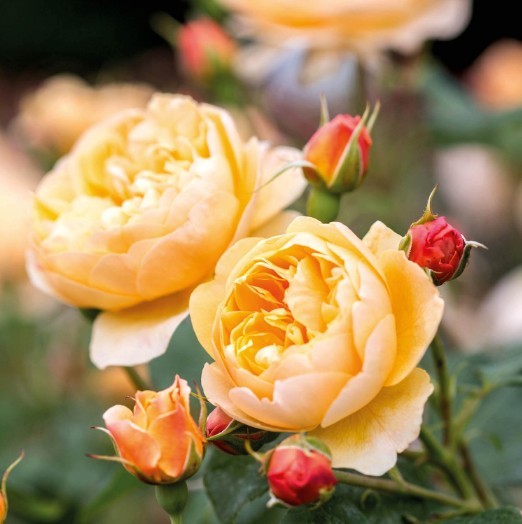 大卫·奥斯丁古典月季的形态特征:圆瓣杯型强香,花期四季,花径6-8cm。