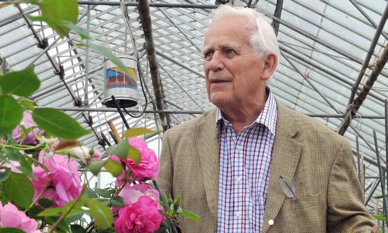 大卫·奥斯汀(David Austin)出生于1926年,从事月季的育种工作,将法国玫瑰、大马士革玫瑰、杂交茶香月季、丰花月季、高卢蔷薇等杂交育种,1961年培育出第一个月季品种‘Constance Spry’,1969年创立大卫·奥斯汀月季公司。2003年获英国皇家园艺协会维多利亚荣誉勋章,2004年获英国花园中心协会终身成就奖,2007年获大英帝国勋章。