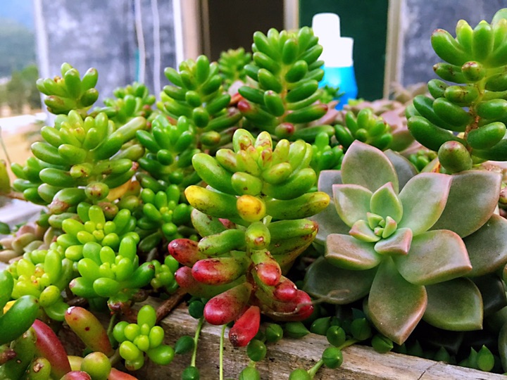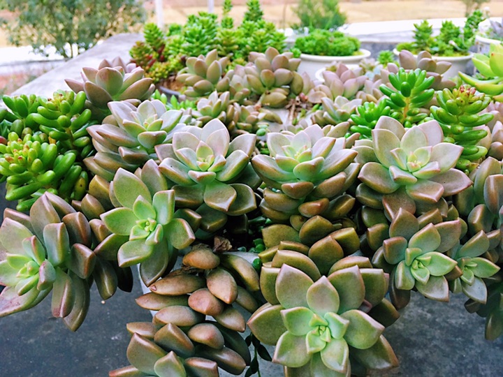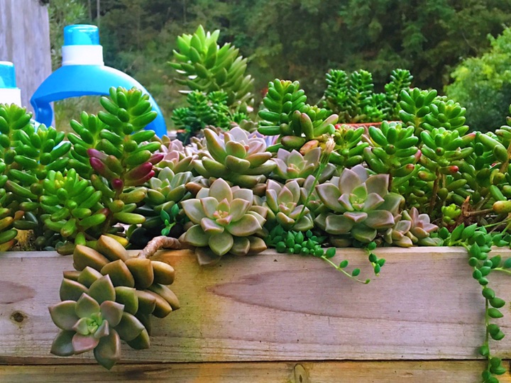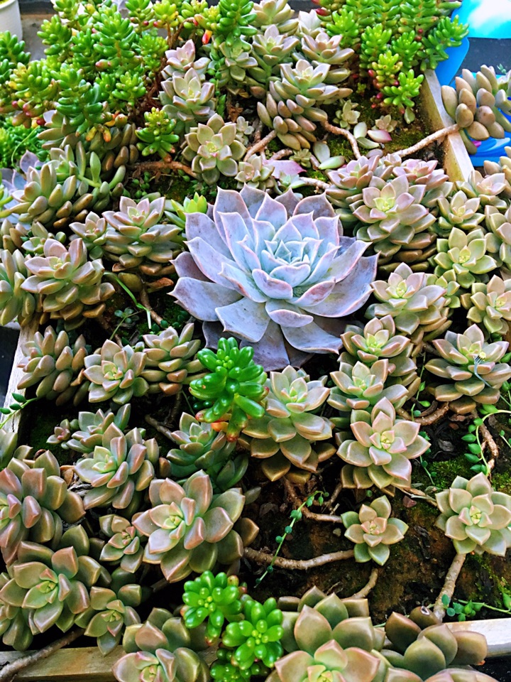 嗯哼,没错,我家也有一盆这样的多肉,要挤满整个盆子了。